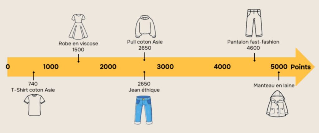 • cette notion de “coût” doit faire écho – dans l’esprit des consommateurs – au prix d’un article en euros : plus il est élevé et pire c’est pour l’environnement.